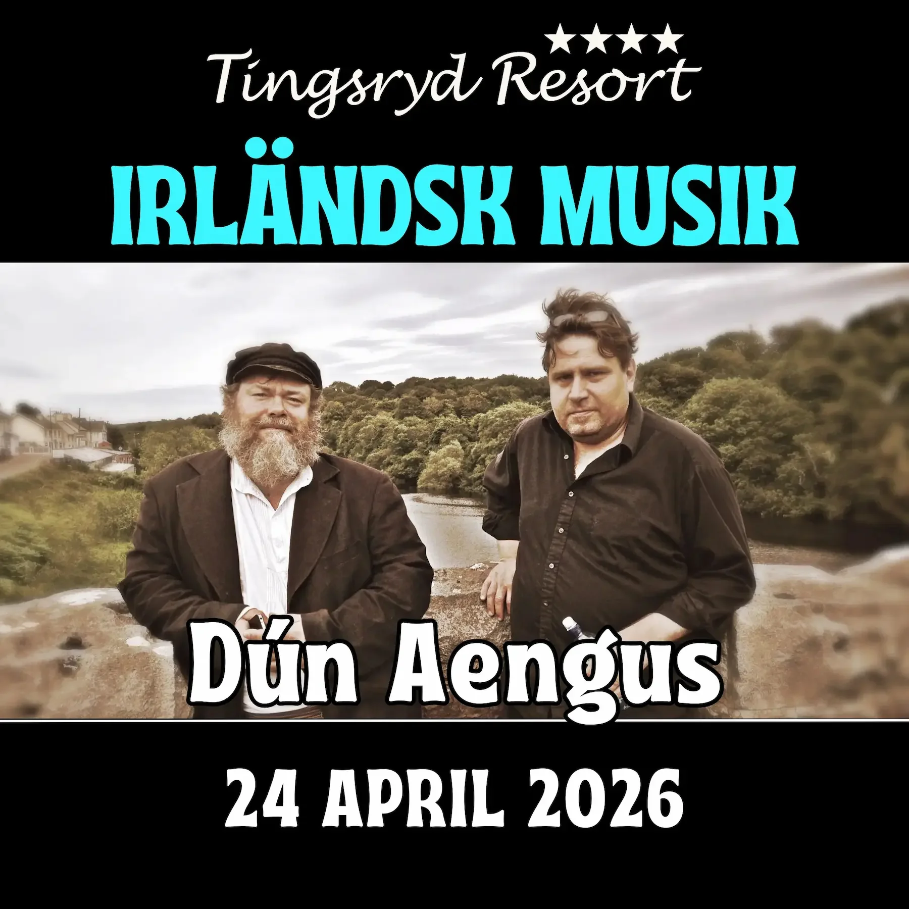 En kväll med Dun Aengus Friday, April 24, 2026 6:00 PM 11:00 PM 18:00 23:00 Tingsryd Resort Tingsryd Resort 362 91 Tingsryd Sweden (map) Google Calendar ICS Kom och njut av levande irländsk musik på Restaurang Mårdslycke! Under kvällen serverar vi något gott att äta och skapar en härlig stämning – en perfekt kväll för musikälskare och för dig som vill ha trevligt i gott sällskap.